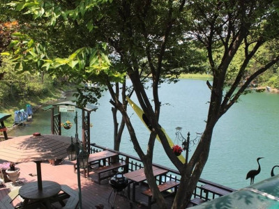 여우사이는 숯불바비큐 전문점으로 가평군 청평면 상천저수지 앞에 위치해 있다. 고기를 처음 구울 때는 주인장이 맛있게 굽는 법을 알려 주며 구워 준다. 또한 검증된 좋은 원육과 참숯을 사용하여 고기를 굽고 있다. 야외에 앉아 호수뷰를 바라보며 고기를 구워 먹으면 마치 펜션이나 캠핑에 온 것만 같은 분위기이다. 물론 실내에서 바비큐를 즐길 수도 있다. 추천 메뉴인 모둠 바비큐 세트의 구성은 목살, 삼겹살, 새우, 수제 소시지이다.
