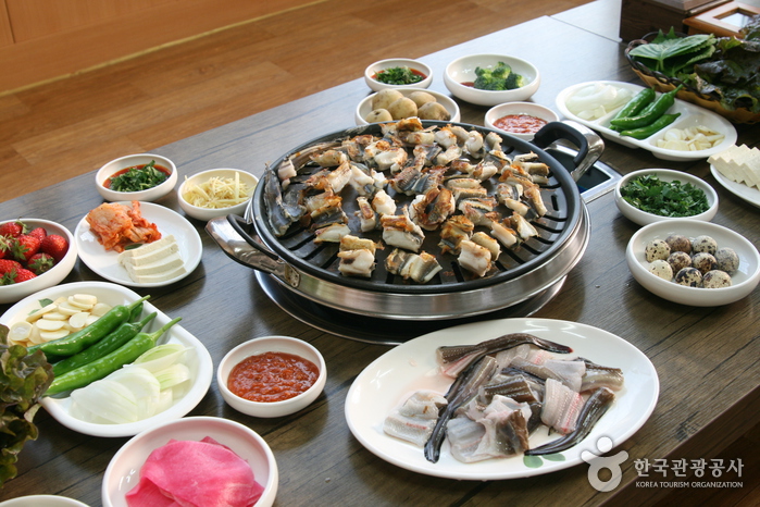 먹으면 장작을 패고 싶어진다라는 말이 있을 정도로 장어는 스태미나 보양식으로 우리에게 친숙한 음식이다. 그중에 경남의 사천 장어는 그 육질이 부드럽고 고소하기로 유명한데 남해 바다를 벗 삼아 막걸리 초장에 찍어 먹는 이 집의 장어회 맛은 가히 일품이라 손꼽을 수 있다. 먹기 위해 쉬어 간다고 하는 사천에서의 장어 맛. 이곳 실안장어촌에서 맛볼 수 있다.