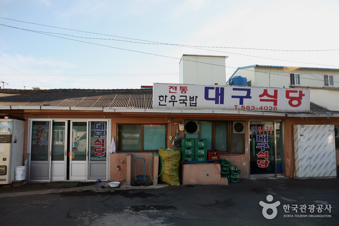 옛 함안 장터에 가면 경상도식 소고기국밥을 전문으로 하는 국촌마을이 있다. 그중에 40년 넘게 2대에 걸쳐 운영하고 있는 곳이 바로 이 집이다. 다른 곳에 비해 선지가 조금 들어가는 것이 특징인데, 사골, 양지, 사태, 내장, 홍두깨살로 우려낸 국물에 무, 콩나물, 파가 함께 어우러져 입안에서 만들어지는 감칠맛은 역시 경상도식 소고기국밥집의 원조답다. 초간장에 살짝 찍어 먹는 수육의 부드러움 또한 이 집의 별미다.