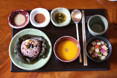 동서남북 자연을 내다볼 수 있는 곳에 위치한 건강하고 즐거운 음식이 있는 농가맛집 온제향가이다. 좌석은 좌식과 입식이 있고, 텃밭과 산과 들에서 채취한 정성 가득한 건강 상차림은 눈과 입을 즐겁게 해준다. 식사 후에 테라스에서 한적한 시골 풍경을 즐기며 차를 마실 수도 있으며, 가볍게 산책을 할 수 있는 힐링 공간을 제공해주기도 한다. 6~7월에는 블루베리 따기 체험도 가능하며, 직접 재배하고 채취한 농산물과 보은의 특산물인 대추, 사과, 한우, 산채나물 등을 이용한다. 보은의 농장과 체험마을에서 생산하는 표고, 유기농 계란, 두부 등 건강한 식재료로 음식을 한다.