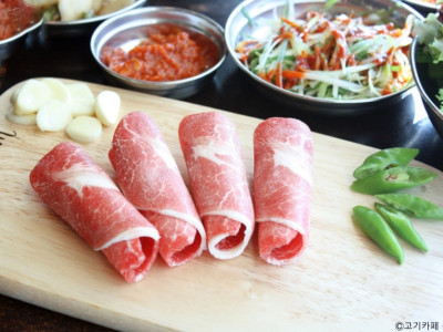 경기도 파주시 동패동에 있는 고기 뷔페 전문점이다. 고기카페 이용요금을 지불하면 무한 리필로 고기를 먹을 수 있다. 후식, 식사, 주류는 별도 비용을 내야 한다. 채소, 김치, 콩나물, 무채 등 첫 상차림은 제공되지만 추가 반찬은 셀프 코너에서 직접 가져다 먹는다. 소고기, 돼지고기, 막창 등 다양한 고기를 먹을 수 있다. 건물 앞이 공용으로 사용하는 주차장이다.
