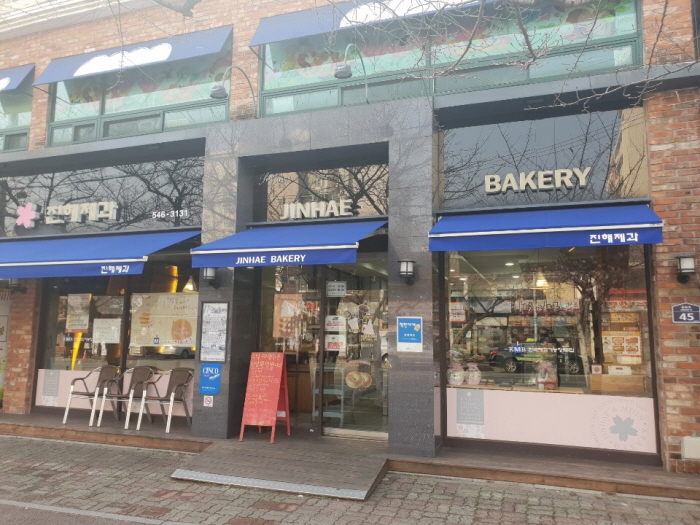창원시에 위치한 진해제과는 오랜전통의 제과점이다. 이곳의 대표 베이커리는 벚꽃빵으로 실제 벚꽃 진액과 벚꽃 앙금을 주원료로 만들었으며, 분홍 앙금과 벚꽃 모양으로 보는 재미도 쏠쏠하다. 이외에도 벚꽃크림치즈타르트와 진해벚꽃샌드, 레몬빵 등 다양한 이색빵을 판매하고 있어 현지인은 물론 창원을 방문하는 관광객들도 자주 찾는 곳이다. 빵은 박스포장으로 제공되어 선물하기에도 적합하다.