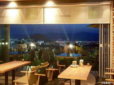 뷰가 좋은 약간 경사진 곳에 있는 브런치 전문점이다. 1층과 2층 그리고 루프탑까지 총 3층으로 이루어져 있고 층마다 분위기가 조금씩 다르다. 1층은 빈티지 느낌의 가구들이 있고 단체 손님들이 앉아서 수다 떨기 좋게 공간 분리가 되어 있다. 루프탑은 안전 문제로 14세 미만 노키즈존이다. 여수 대부분의 핫플레이스가 바다뷰이지만 달밑밤은 시내가 한눈에 보이는 시티뷰 카페이다. 브런치와 펍으로 운영되고 있어서 브런치를 먹기에도 좋고 저녁에 맥주 한잔하기에도 좋다. 우드 감성의 외관과 달리 실내는 화이트 칼라로 심플하다. 루프탑에는 글램핑 텐트 감성의 방갈로 테이블이 있다.