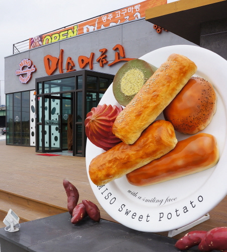 영주의 미소머금고는 국내 최초로 고구마빵을 개발하여, HACCP 인증 시설에서 고구마빵을 제조하고 있다. 고구마빵은 밀가루와 설탕의 함량을 최소만을 사용하여 만들기 때문에 콜레스테롤 최소화 · 트랜스지방 제로인 저칼로리 식품이며, 방부제를 사용하지 않아 건강한 빵을 맛볼 수 있다. 미소머금고 본사에서는 고구마빵에 사용되는 고구마를 직접 생산하는 것뿐만 아니라, 고구마빵 제조 가공 · 판매 · 유통을 모두 책임지고 있다. 본사는 매장과 공장, 체험관이 같이 있어 고구마를 이용한 고구마케이크, 고구마쿠키, 고구마빵, 즉석빵 등의 다양한 먹거리를 맛볼 수 있다. 또한, 고구마빵을 만드는 과정을 눈으로 직접 볼 수 있어 소비자가 안심하고 먹을 수 있는 견학 및 체험이 가능하다.