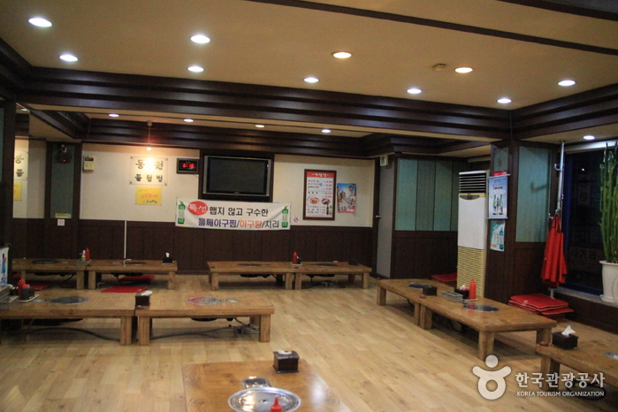 큼직큼직한 아귀와 아귀찜에 듬뿍 첨가된 구수한 들깨의 향을 느껴볼 수 있는 동원물텀벙은 기분 좋게 매워오는 입맛으로 시작해서 마지막 볶음밥으로 마무리할 수 있는 아귀찜 전문점이다. 전체적으로 물텀벙이 거리는 가격이 있는 편이므로 혹여 부담이 된다면 다른 곳보다 상대적으로 저렴한 이곳, 동원물텀벙을 추천한다. 또한 다른 업소에는 없는 물텀벙이 작은 사이즈를 제공하기 때문에 부담 없이 즐길 수 있다.