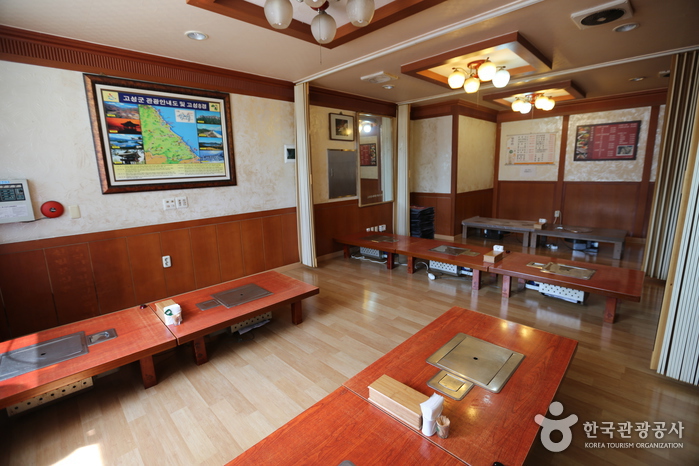한수위숯불갈비는 간성읍 하리마을회관에 위치하고 있다. 고급스러운 인테리어로 꾸며진 고기 전문식당으로 다른 곳에서 오랫동안 영업하다가 현 장소로 이전하여 내부에는 가운데에 큰 홀과 2개의 방이 있다. 비교적 저렴한 가격에 한우 생갈비 구이를 맛볼 수 있으며, 강원도의 청정 자연을 바라보면서 고기를 먹을 수 있어 운치를 더한다.