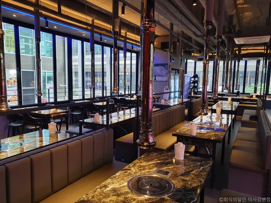 회식의달인은 무한리필 고깃집이다. 삼겹살, 항정살, 부채살, 새우살, 꽃등심, LA갈비 등 무려 20가지의 소고기와 돼지고기 부위를 무한리필로 즐길 수 있다. 또한 라면과 떡볶이, 공기밥도 무제한으로 먹을 수 있다. 100평급의 규모로 각종 모임과 회식장소로 안성맞춤이며, 아기의자와 아기식기가 구비되어 있어 가족외식을 하기에도 좋은 곳이다.