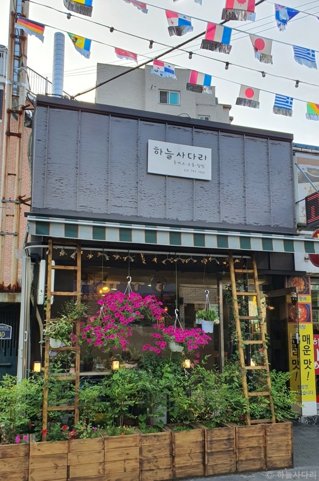 하늘사다리는 경기도 하남시에 위치한 김밥 맛집으로 유명한 곳이다. 김밥 속이 꽉 차있고 크기도 커서 간단한 한 끼 식사로 좋다. 김밥 메뉴가 다양하게 있는데, 묵은지와 땡초, 돼지고기가 들어간 묵땡김밥과 돈가스와 양배추채가 들어간 돈가스 김밥, 야채김밥인 하늘김밥 등이 있다. 이외에도 참치김밥, 치즈김밥이 있고, 떡볶이, 어묵우동, 라면 등의 분식류도 맛볼 수 있다.