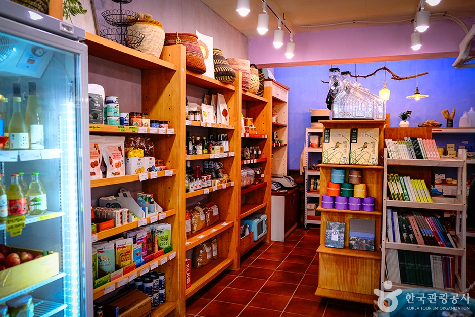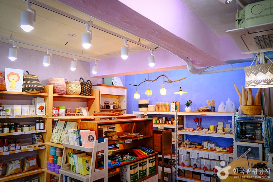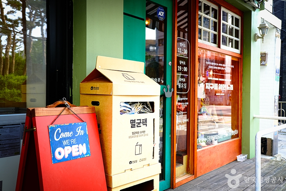 지구를 위한 노래는 제로웨이스트를 추구하는 비건 카페이자 생태주의 마켓이다. 비건 및 유기농 식료품과 공정무역으로 거래된 생활용품을 판매하고 친환경 세제를 용기에 담아서 구매할 수 있다. 또한 환경 보존에 대한 내용을 담은 친환경 서적들을 전시하고 판매하고 있다. 지구를 위한 노래의 음식들은 비건 메뉴로서 채식주의자들에게 사랑받고 있다. 아트플로깅, 생태비건 미술 수업 등의 교육 프로그램이 운영되고 있으며 프로그램들에 대한 정보는 지구를 위한 노래 소셜 미디어에서 확인할 수 있다. 지구를 위한 노래는 수도권 지하철 중앙보훈병원역 2번 출구에서 약 700m 떨어진 곳에 있다.