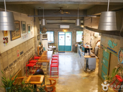 대부도 동춘서커스 건너편 회센터 안쪽으로 1분 거리에 있는 대부도 카페에바다는 겉으로는 상가 건물이 가리고 있지만 안쪽으로는 바로 바다가 펼쳐지는 뷰맛집 카페이다. 실내 인테리어도 직접, 로스팅도 직접, 커피콩빵도 직접 구워 판매하는 이곳은 구석구석 감성 돋는 인테리어뿐만 아니라 바로 카페테라스에서 서해안 낙조를 볼 수 있는 낙조 명소 카페이다. 테라스에서 일몰을 감상하는 사람들을 위해 포근한 담요들과 방석도 넉넉하게 준비되어 있으며 오션뷰와 함께 음료와 디저트까지 즐길 수 있다.