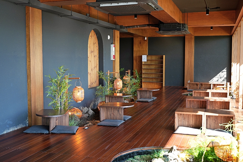 청수당여수는 여수시 고소동 벽화마을에 있는 일본풍의 고즈넉한 카페다. 카페로 들어가는 입구에는 우거진 대나무와 나무 조명으로 장식이 되어 있고, 작은 연못이 있어 감성적인 분위기를 자아낸다. 건물은 4층 규모로, 1층은 주문하는 곳으로 운영하며 2층에는 베이커리와 테라스가 있는 좌식 공간, 3층은 테라스가 있는 테이블 공간, 4층 루프탑으로 이루어져 있다. 층마다 인테리어는 조금씩 다르지만, 모두 자연을 느낄 수 있는 돌과 식물을 이용해 휴식이라는 통일된 주제를 가지고 있다.