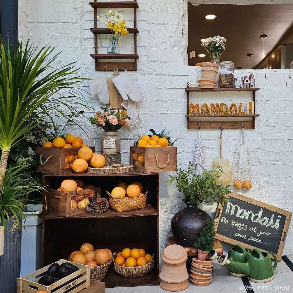 만달리는 부산 기장에 있는 브런치카페로 한적한 분위기 속에서 프레시한 브런치를 즐길 수 있는 곳이다. 브런치를 포함해 음료 메뉴도 다양해 데이트 코스나 나들이 장소로도 인기가 높고 캐치테이블로 원격 웨이팅이 가능한 곳이다. 주변 관광지로 기장 용소웰빙공원이 있다. 유럽 느낌의 외관에 야외 정원이 넓게 있어 날씨 좋은 날에는 야외 테이블 인기가 가장 좋으며 애견 동반도 가능한 곳이다. 대표 메뉴는 클램 차우더 수프와 하우스 포카치아로 조갯살과 감자가 듬뿍 들어간 클램 차우더 수프이다.