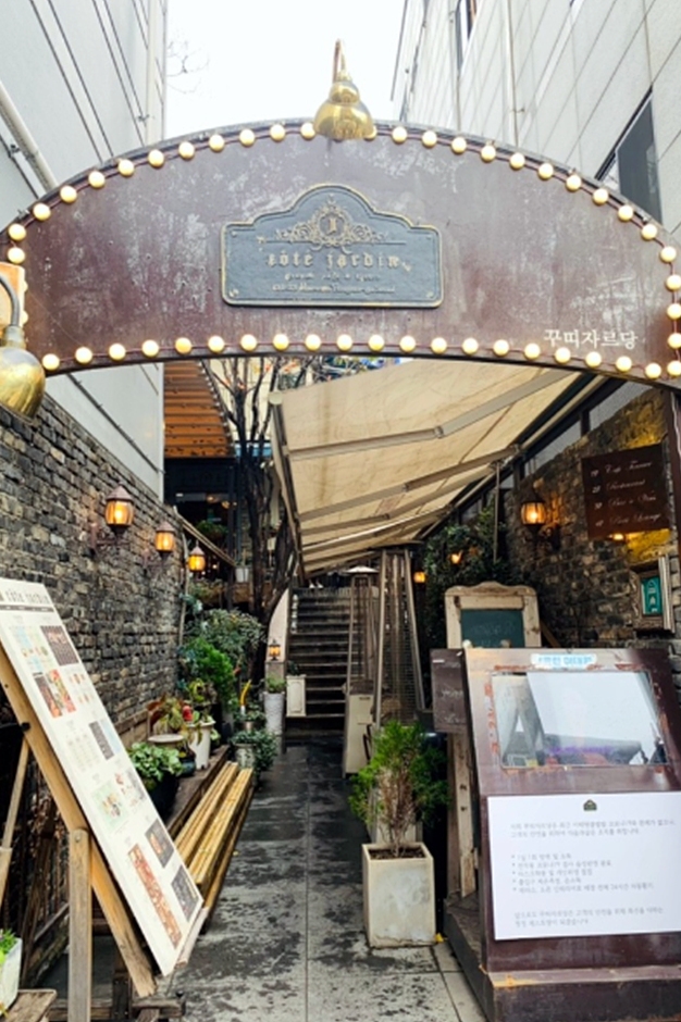 꾸띠자르당은 서울시 용산구 이태원동에 있는 프랑스 요리 전문점이다. 안심 스테이크, 양갈비 스테이크, 연어 스테이크 등 고기 요리가 특히 인기 있으며, 육즙이 풍부하고 부드러워 만족도가 높다. 어니언스프, 라따뚜이 같은 전통 요리부터 트러플크림 리조토, 해산물 파스타 등 다양한 메뉴를 제공한다.