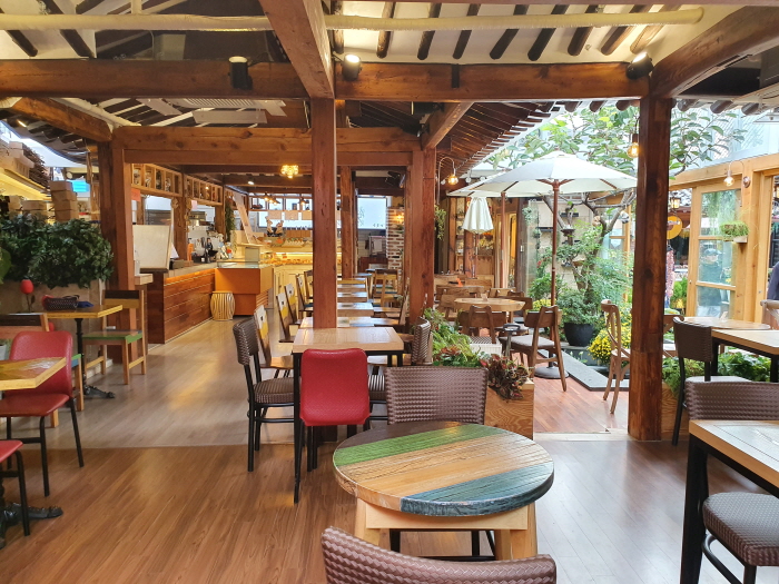 한옥의 아름다움을 고스란히 간직하고 있다. 오래된 감나무를 살리는 인테리어로 방문하는 고객들로 하여금 편안함과 감동을 드리고 있는 카페이다. 신선하고 맛있는 사과로 만든 애플파이, 발효버터를 사용한 스콘과 에그타르트는 감꽃당에서만 만날 수 있는 시그니처 메뉴이다. 매장 내에 포크와 나이프를 제공하지 않는 대신 직원분이 직접 잘라주고 물티슈를 제공해 준다. 밖에 산미가 풍부한 커피와 다양한 음료 등을 만날 수 있다.