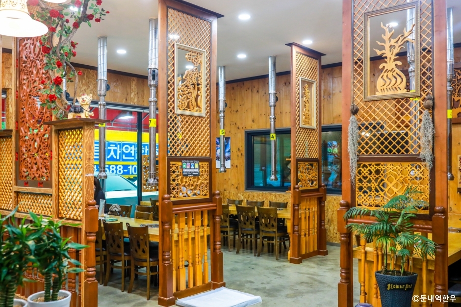 둔내역한우는 강원도 횡성군 둔내역에 있는 한우 전문점이다. 정육점에서 마음에 드는 고기를 고른 후 식당으로 옮겨 자리를 잡으면 곁들임 음식을 차려주는 정육식당이다. 고기와 차려지는 차림상은 더덕구이를 비롯해 알차고 맛있는 음식들이다. 부족하면 추가할 수 있다. 한우 육회비빔밥이나 한우 육회 등도 1++ 등급으로 만들고 있으며 단품 메뉴로 주문할 수 있다. 주차장은 매장 앞에 전용 주차장이 있어 이용하면 된다.
