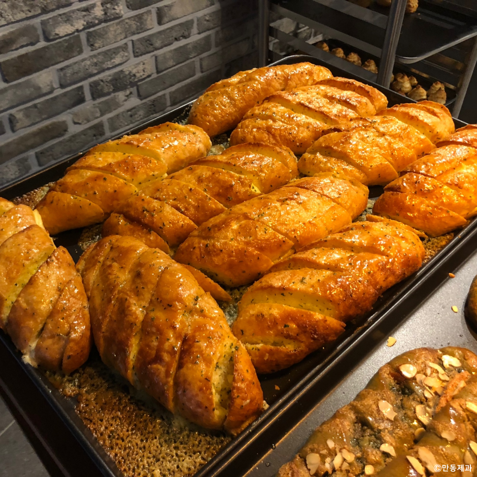 만동제과는 강원도 강릉시 강릉중앙시장 근처에 있는 줄을 서서 먹는 빵집이다. 평일에도 오픈 전부터 빵이 나오기를 기다리는 줄이 길다. 문이 열리면 2팀씩 빵집으로 들어가서 빵을 골라 나와야 한다. 바로바로 구매해서 나가기 때문에 대기가 길지는 않다. 하지만 그날의 빵이 다 팔리면 바로 마감한다. 시그니처 메뉴는 마늘바게트이지만 다른 빵들도 인기가 좋다. 카푸치노 빵은 부드러운 식감과 시원한 크림으로 인기가 많다.
