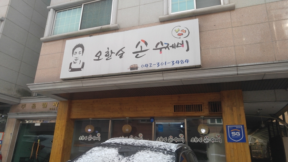 오한순 손수제비는 대전광역시 서구 갈마동에 있다. 민물새우손수제비와 부추손수제비, 수육, 부추전이 주 메뉴인 한식당이다. 현대적인 외관과 깔끔한 분위기를 연출하는 인테리어가 눈에 띈다. 대표 메뉴는 민물새우를 넣고 끓인 육수 덕분에 시원함을 느낄 수 있는 민물새우 손수제비다. 수육은 잡내 없이 담백하고, 민물새우손수제비는 칼칼하면서도 깊은 맛이 일품이다.