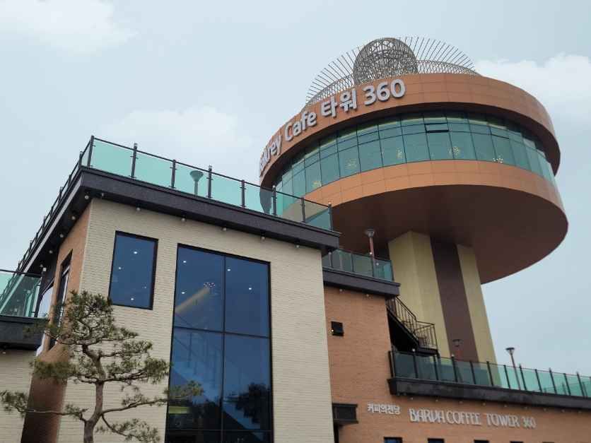 대부도 바르바커피 타워360은 360도 회전하는 카페에서 바다와 산의 조망을 느끼며 커피와 베이커리를 즐길 수 있는 곳이다. 타워가 한 바퀴 도는 시간은 한 시간 정도 소요되고 같은 자리에서 한 바퀴 도는 동안 바뀌는 전경을 보며 차를 마시는 새로운 경험을 할 수 있다.
