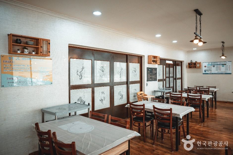 장흥 수문해수욕장과 수문항 사이의 방파제 앞에 자리 잡고 있는 향토 맛집이다. sbs의 맛대맛에 소개되고 나서 유명세를 치르기 시작했지만, 지역에서는 오래전부터 바지락 회로 소문이 자자했던 집이다. 조갯살에 미나리와 양파를 더해 고추장과 식초에 무쳐내는데 자극적이지 않은 새콤함 뒤에 단맛이 도는 게 독특하다. 여기에 중간중간 입맛을 달래라고 개운한 바지락 탕도 함께 제공한다. 소문난 바지락 회의 비결은 이 집에서만 사용하는 식초에 있다. 청주 됫병에 담겨 주방 한켠에 비밀스럽게 숨겨놓은 식초는 막걸리를 발효시켜 만들었다고 한다. 직접 만든 막걸리를 한 번 더 삭혀 식초를 얻는다. 고추장 역시 직접 만들고 막걸리 식초를 가미해 초장을 만든다. 바다 하우스는 키조개, 바지락을 전문으로 취급하지만 철에 따라 전어, 농어, 하모(갯장어) 등도 회로 내놓는다.