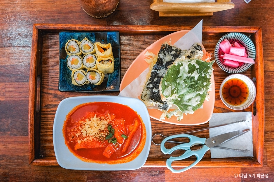 애월튀김간은 일식 수제모듬튀김과 달큰한 국물떡볶이 전문점이다. 메뉴는 떡볶이와 다양한 종류의 튀김들로 구성되어 있는데, 특히 혼자 오는 손님들은 위한 1인 한정 메뉴를 제공한다. 떡볶이와 김밥은 물론, 김말이와 새우, 고구마, 깻잎으로 구성된 튀김까지 알차게 채운 한상 세트메뉴다. 대표 메뉴인 떡볶이는 매콤 달콤한 맛으로 어린 시절에 먹던 추억의 맛을 떠올리게 한다. 김밥은 계란말이 김밥으로, 떡볶이와 함께 먹으면 탁월한 조화를 이룬다. 갓 튀겨낸 튀김들도 재료 본연의 맛과 바삭한 식감이 어우러져 입맛을 돋운다.
