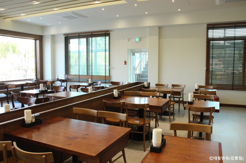대동면옥 강릉점은 강릉시 교동에 있는 면 전문점이다. 50년 넘게 막국수 냉면집을 주문진에서 운영하고 있는 대동면옥이 강릉에 새롭게 연 식당이다. 메뉴는 본점과 동일하게 새콤달콤한 가자미 회가 올라간 회비빔 막국수, 회비빔 냉면이 주메뉴이다. 물론 물 냉면과 물 막국수도 있다. 보들보들 부드럽게 삶아진 수육과 가자미회 무침을 같이 먹는 맛이 훌륭하다. 새로 오픈한 매장이라 인테리어가 현대적이고 깔끔하다. 대기가 많은 식당이라 도착하면 바로 예약하고 차례를 기다려야 한다. 전용 주차장을 갖추고 있어 이용이 편리하다. 모든 메뉴가 포장이 가능해서 매장이 붐빌 때는 포장해서 갈 수도 있다.