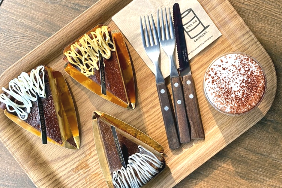 스윗솔트는 서울 강동구의 길동 공원, 길동생태공원, 승상산이 3면으로 둘러싸인 숲 속의 카페이다. 일반적인 브런치 카페보다 일찍 영업을 시작해서 아침 운동을 하면서 들리거나 자녀 등원 후 찾는 학부모가 많다. 건물이 푸른 나무들에 둘러싸여 있고 건물의 세 면에 큰 유리창을 설치해 카페 안에서도 자연 속에 있는 듯한 느낌이 들게끔 공간이 구성되어 있다. 식사류는 브런치세트, 햄버거, 파스타 등 여러 가지가 호불호를 가리지 않는 맛으로 인기가 많다. 특별한 음료인 칼라만시에이드, 루이보스 밀크티를 빵과 같이 먹는 것도 별미다.