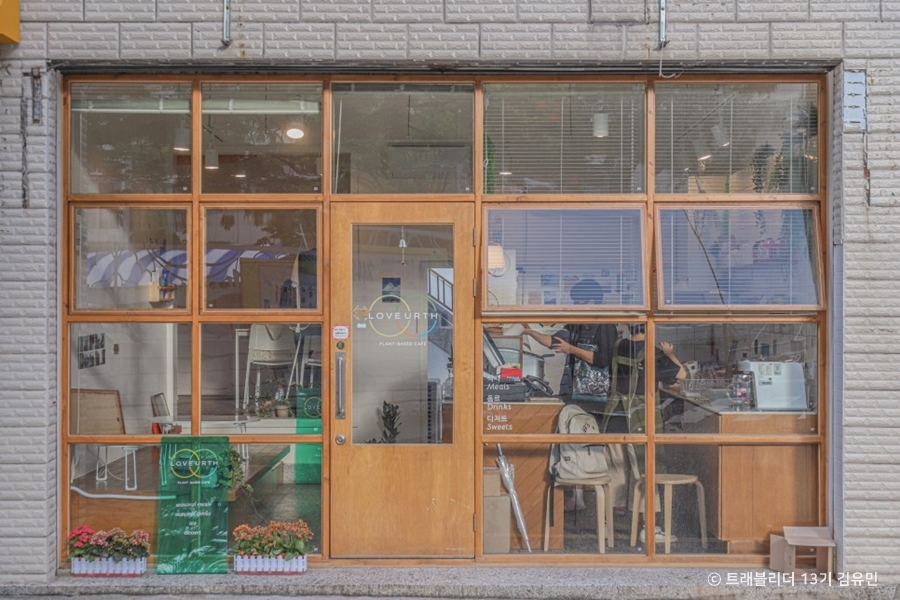 부산 비건 카페 러브얼스의 ‘Urth’는 Us와 Earth를 합친 복합어로, 우리를 사랑하고 지구를 사랑하자는 의미를 담았다. 러브얼스의 비건 버거에는 직접 만든 선 드라이 토마토 페스토가 들어가고, 빵은 부산의 또 다른 비건 베이커리인 매초롬에서 만든 쌀식빵을 사용한다. 러브얼스 벽면에는 비건에 관련된 도서가, 계산대 옆쪽으로는 버려지는 이면지를 활용한 명함과 비건 메시지를 담은 책갈피가 비치되어 있다. 제로 웨이스트에도 적극 동참해 100% 생분해되는 다회용 대나무 빨대를 제공하고, 메뉴 포장 시에도 생분해 용기를 제공한다. 직접 용기를 가져올 경우 할인 혜택을 제공한다.