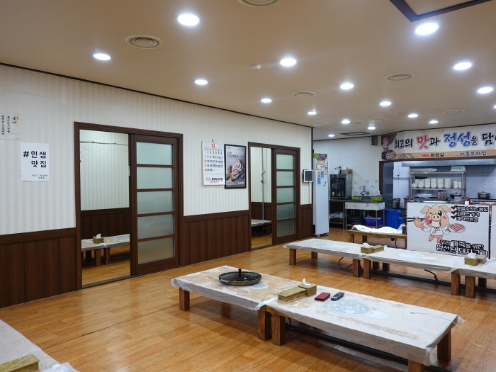 진부면 인생맛집으로 깔끔한 백반과 가정식집이다. 직접 만든 반찬을 사용하여 만든 집밥 전문 식당이다. 솥뚜껑 위에 두툼한 벌집 삼겹살을 구워 먹을 수 있으며 반찬부터 고기까지 신선하고 맛있기로 유명하다. 매장 내부는 좌식 테이블로 구성되어 있으며 룸도 있어 개별적으로 식사도 가능하다. 메뉴 주문 시 기본찬들은 다양하며 정갈하게 구성되어 나온다.