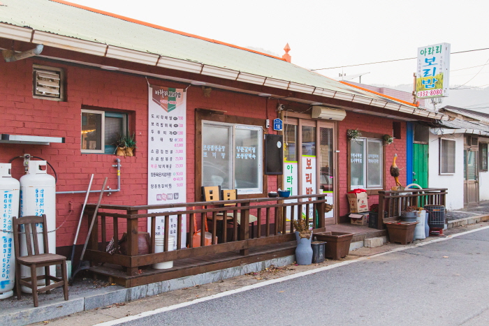 현지인들이 인정하는 보리밥 맛집이다. 양껏 담아 맛볼 수 있는 보리밥과 다양한 반찬으로 한 끼를 즐길 수 있는 곳이다. 한식 뷔페식으로 취향에 맞게 식사를 할 수 있다. 보리밥과 일반 쌀밥 두 가지가 준비되어 있으며 계란 프라이와 국 그리고 다양한 밑반찬들을 골라 담으면 된다. 구수하고 정겨운 보리밥의 맛과 손맛이 느껴지는 반찬들은 마치 집밥같이 느껴진다. 보리밥 외에도 두부찌개, 삼겹살, 토종 닭백숙 등의 식사 메뉴가 준비되어 있다.