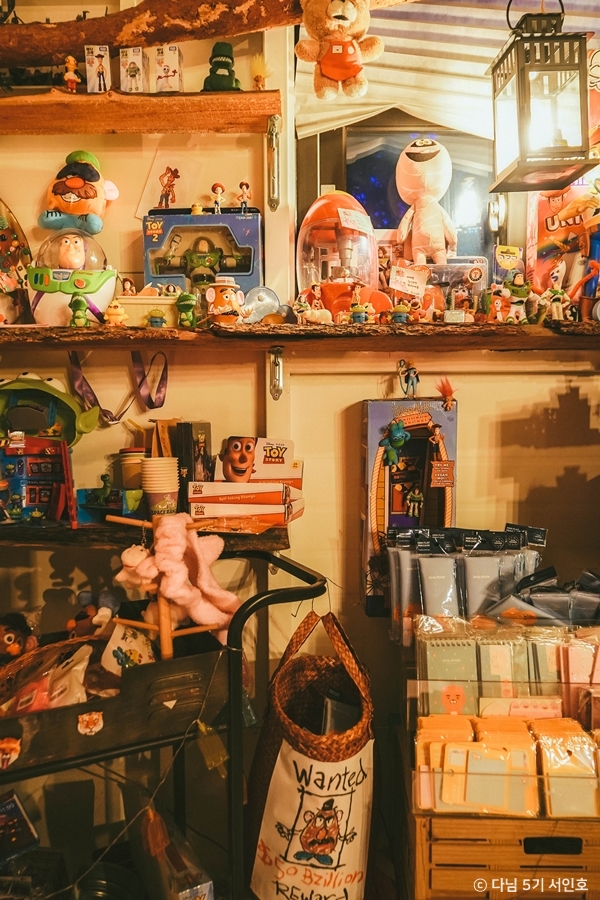 카페 2층은 동심을 자극하는 키덜트 존이다. 추억의 만화 속 주인공부터 빈티지한 소품들이 가득해 구경하는 재미가 쏠쏠하다. 워낙 전시된 소품이 많아서 노키즈존으로 운영된다.
