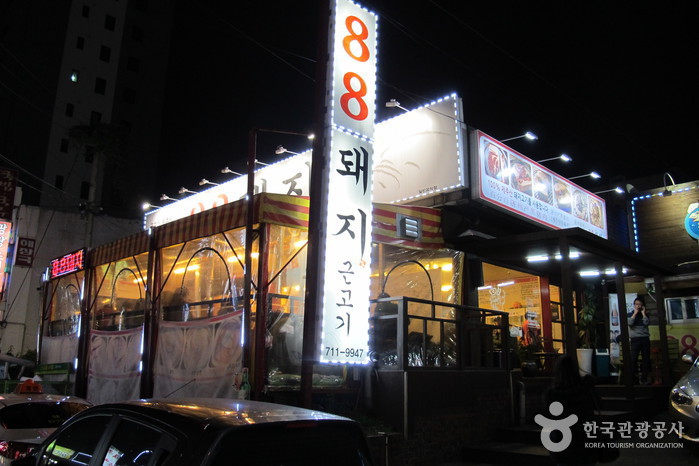 88돼지는 제주시에 위치한 흑돼지 근고기 전문점이다. 100% 제주산 품질 좋은 돼지고기를 고객에게 제공한다. 쫄깃하고 두툼한 흑돼지 근고기를 멜젓에 찍어 먹는 맛의 풍미가 깊다. 근고기 외에도 오겹살을 맛볼 수 있다. 제주 공항 근처에 위치하여 많은 여행객들이 방문하는 고기집이다.
