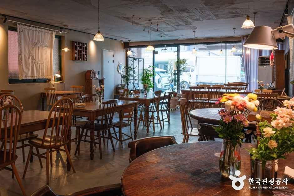 저녁 시간에는 묵호항의 해산물과 이탈리안 조리법을 결합한 퓨전 미식 공간으로 변화한다. 묵호 앞바다의 해산물을 활용한 카르파초와 강원도 비천골 감자에 트러플 향을 더한 뇨끼 등이 대표적인 메뉴이다. 특히 희소성이 높은 프리미엄 보리새우 무침은 한섬에서만 맛볼 수 있는 별미로, 독보적인 단맛과 부드러운 식감을 제공한다. 또한 요리와의 조화를 고려하여 엄선된 우리 술 페어링을 제안하여 맛의 깊이를 더한다. 따뜻한 조명과 원목 가구가 조화를 이룬 아늑한 내부 인테리어는 차분한 식사 분위기를 조성하며, 인근에 한섬해수욕장이 위치해 있어 식후 산책을 즐기기에도 좋다.