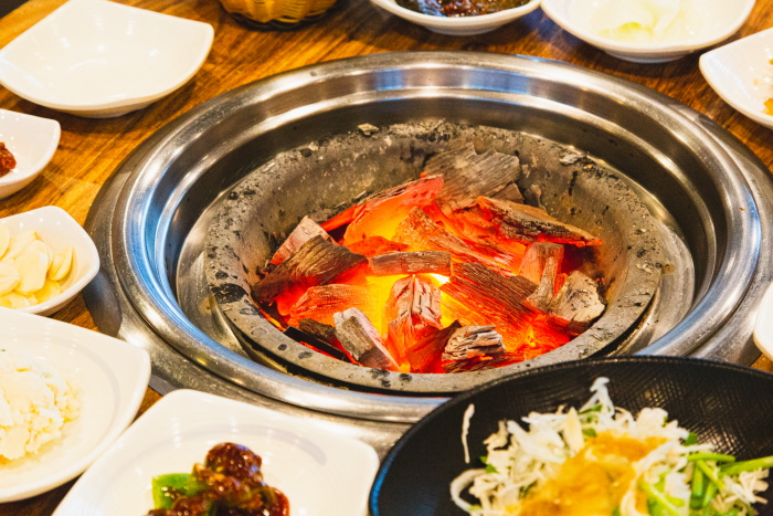 숯불에 삼겹살이나 돼지 갈비를 구워 먹는 숯불 전문 고기집으로, 강원도 참숯을 사용하여 음식을 제공한다. 메뉴로는 생삼겹살, 고추장 삼겹살, 숯불 닭갈비 등이 있다.
