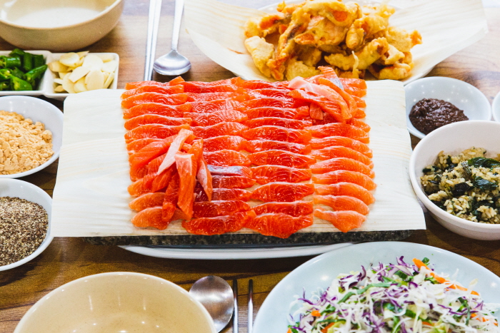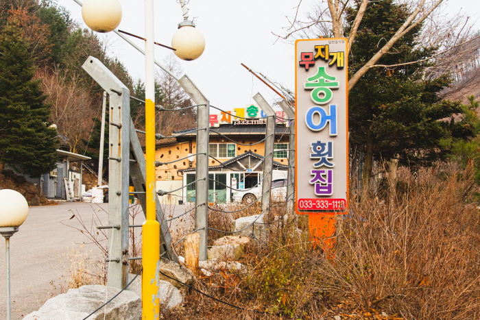 싱싱하고 쫄깃한 송어회 맛집으로 착한 가격, 청정한 공기와 선홍색의 살의 빛깔이 곱고 잡내 하나 없는 맛을 느낄 수 있는 전문점이다. 일회용 앞치마가 있고 국내산으로 이뤄진 요리들이어서 믿고 먹을만 하다. 산장같은 이테리어로 아늑하고 나무에 둘러싸인 듯한 느낌으로 음식을 즐길 수 있다. 근처에 오토캠핑장이 위치해 있어 계방산 캠핑하며 방문하기에도 좋은 송어횟집이다.