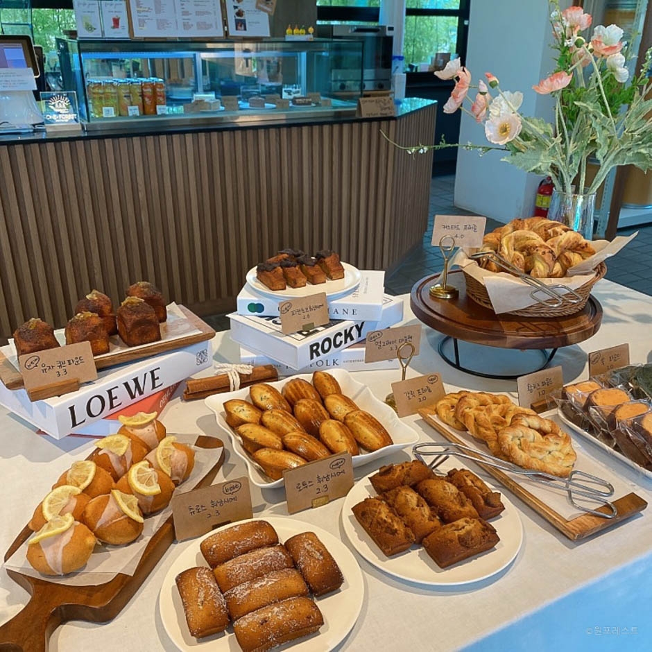 원포레스트는 이름에서 느껴지듯이 조경을 신경 써서 숲속에 온 듯한 느낌을 주는 대형 카페다. 1층과 2층 테라스로 이루어져 있는데 1층은 우드톤의 편안한 느낌이고 1층에서 통창을 통해 야외정원이 훤히 보여서 마치 숲속에 온 것 같은 기분을 갖게 해준다. 2층엔 중앙에 징검다리를 만들어 놓아서 시원한 개방감이 있다. 루프탑과 야외정원은 조경을 섬세하게 해 놓아서 아기자기 예쁘고 청량하다.