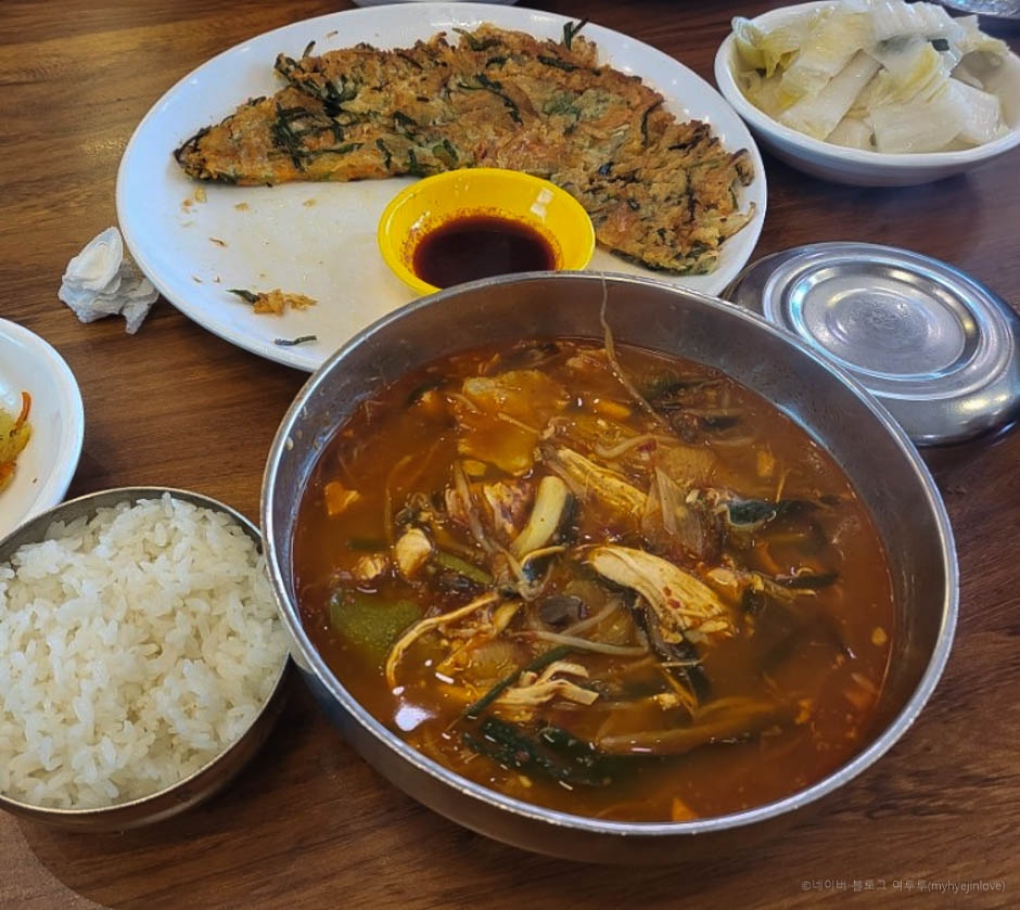 장춘닭개장은 송탄IC 바로 앞에 있고 주차 공간이 넓다. 메뉴는 얼큰닭개장, 맑은닭곰탕, 닭볶음탕, 부추전이 있다. 기본 반찬으로 백김치와 깍두기가 나온다. 얼큰닭개장은 파와 고사리, 숙주나물을 베이스로 깊게 우려 끓여 나온 닭개장으로 칼칼한 맛이지만 더 매운맛을 원하면 청양고추를 요청하면 된다. 매운 음식을 좋아하지 않는 사람을 위한 맑은 닭곰탕은 담백하고 깔끔한 맛이다. 식사 후 차로 11분 거리에 고덕수변공원을 방문하면 좋다.
