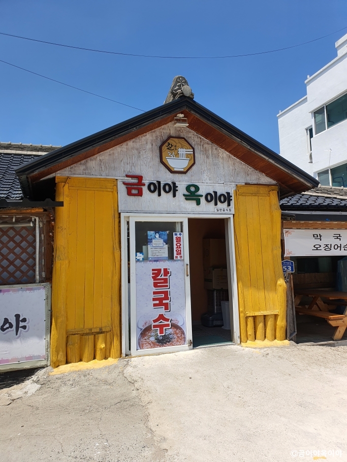 금이야 옥이야는 강원도 속초시 조양동, 속초해수욕장 근처에 있는 장칼국수와 만두 맛집이다. 가격도 합리적이고 양도 푸짐해서 인기가 좋다. 대표 메뉴는 장칼국수와 장칼제비이다. 특히 장칼제비는 다른 식당에서 볼 수 없는 메뉴이다. 매운 것을 즐기지 않는 손님은 맑은 칼국수나 맑은 칼제비를 먹을 수 있다. 곁들임 음식으로 감자전, 메밀전병, 오징어순대 등이 있어서 강원도의 토속 음식을 즐길 수 있다. 주차는 매장 앞에 가능하지만 만차 시 속초해수욕장 공영 주차장을 이용하면 된다.