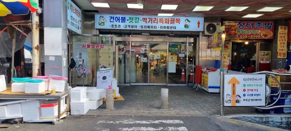 속초항에 인접한 수산시장으로 대형 주차장 등 접근성이 좋으며 활어 포장이 가능한 식당이 모여 있다.