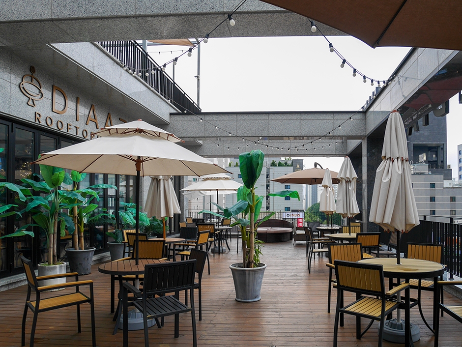카페 디아즈는 수원 나혜석 거리 번화가 중심에 있는 루프탑 카페이다. 이 카페는 옆 건물 엘리시아 빌딩과 주차 계약으로 맺어 주차를 편하게 할 수 있다. 이곳은 4층과 5층이 카페 매장으로 천장이 노출된 인테리어에 내부가 크고 테이블의 간격이 넓게 되어 있다. 흡연할 수 있는 카페 디아즈는 매장 내부와 4층 야외테이블은 금연이며, 5층 야외테이블은 흡연할 수 있는 흡연 전용 좌석으로 되어 있다. 야외 테이블 자리는 반려동물 동반할 수 있다. 당일 만든 케이크만 판매하는 이곳은 딸기 생크림 케이크와 딸기 티라미수가 인기 있고 홀 케이크는 주문 제작 및 레터링을 할 수 있다. 근처에 수인분당선 수원시청역이 있어 대중교통으로도 이용이 편하다.