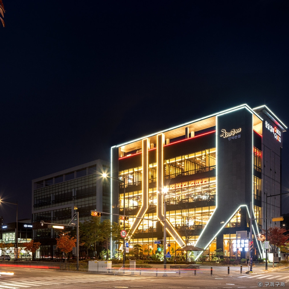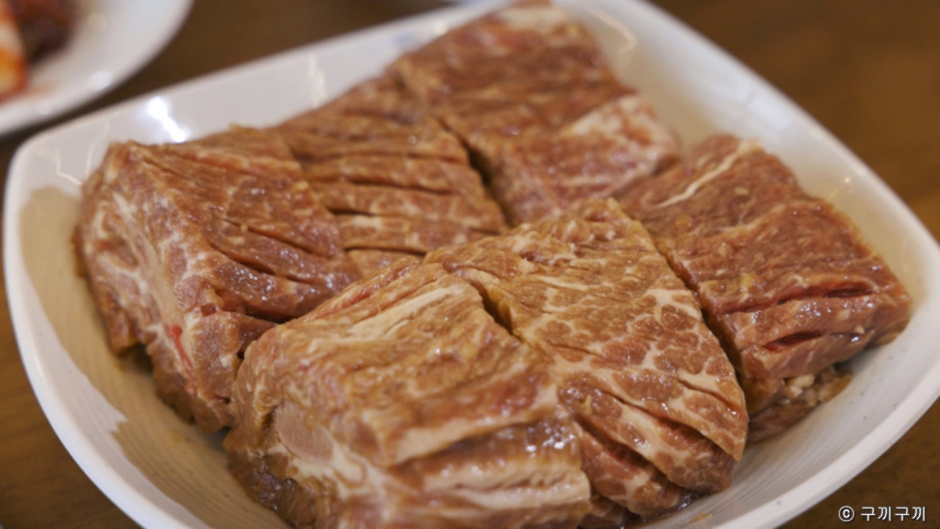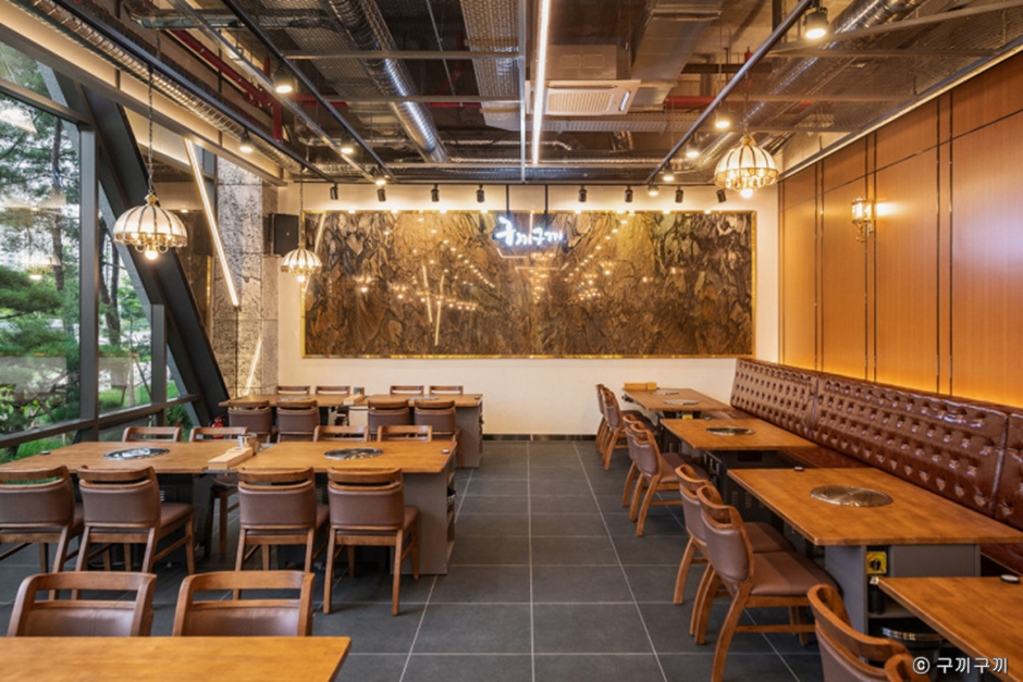 구끼구끼 민락본점은 의정부 민락동에 있는 참숯갈비 전문점이다. 넓은 홀과 룸을 갖추고 있으며 대규모 회식이나 모임도 쾌적하게 즐길 수 있다. 돼지갈비+냉면 또는 된장찌개, 공깃밥을 선택할 수 있는 가성비 좋은 메뉴이다. 기본 밑반찬으로 잡채, 게장, 단호박, 김치, 샐러드 등이 깔끔하고 정갈하게 나온다.