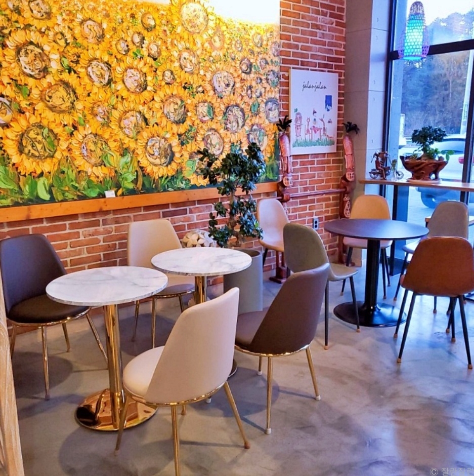 잘란잘란은 경기도 이천시 마장면에 있는 카페이다. 잘란잘란은 인도네시아어로 '산책하다'라는 뜻이다. 커피와 수제청, 수제 디저트, 생과일을 전문적으로 판매한다. 인테리어 소품들도 다양하게 전시되어 있어 볼거리가 많다. 각각의 테이블도 독특하게 다양하게 꾸며져 있어서 자리 선택의 재미도 있다. 6km 거리에 별빛 우주정원 테마파크, 설봉공원, 이천 도예마을, 지산 컨트리클럽 등이 있어 함께 둘러보기 좋다.