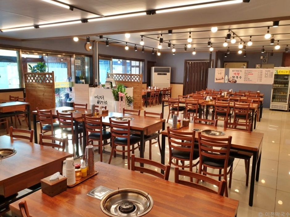 이천막국수는 경기도 이천시 사음동에 있는 막국수 전문점이다. 불고기전골 주는 막국수를 2인 이상 시키면 소불고기 전골을 무료로 제공한다. 무료라는 생각이 들지 않을 만큼 푸짐한 양이다. 담백한 맛에 고기와 숙주의 식감이 어울려서 맛을 더해준다. 막국수 전문점인 만큼 물막국수와 비빔막국수 모두 인기다. 물막국수는 시원한 육수가 감칠맛이 나고, 비빔막국수는 직접 만든 양념장의 맛이 새콤 달콤 매콤 조화롭다. 이천막국수의 인기 요인 중 하나는, 셀프 부침개다. 입구 바로 뒤에 부침개 코너가 있는데, 반죽을 두어 직접 조리해 먹을 수 있도록 했다. 하루에 40그릇만 판매한다는 육개장도 별미이고, 수육은 좋은 고기를 사용해 냄새 없고 식감이 부드럽다. 근처에 이천도예마을, 이천시립월전미술관, 이천시립박물관, 예스 파크, 설봉공원, 달맞이 공원이 있어 함께 둘러보기 좋다.