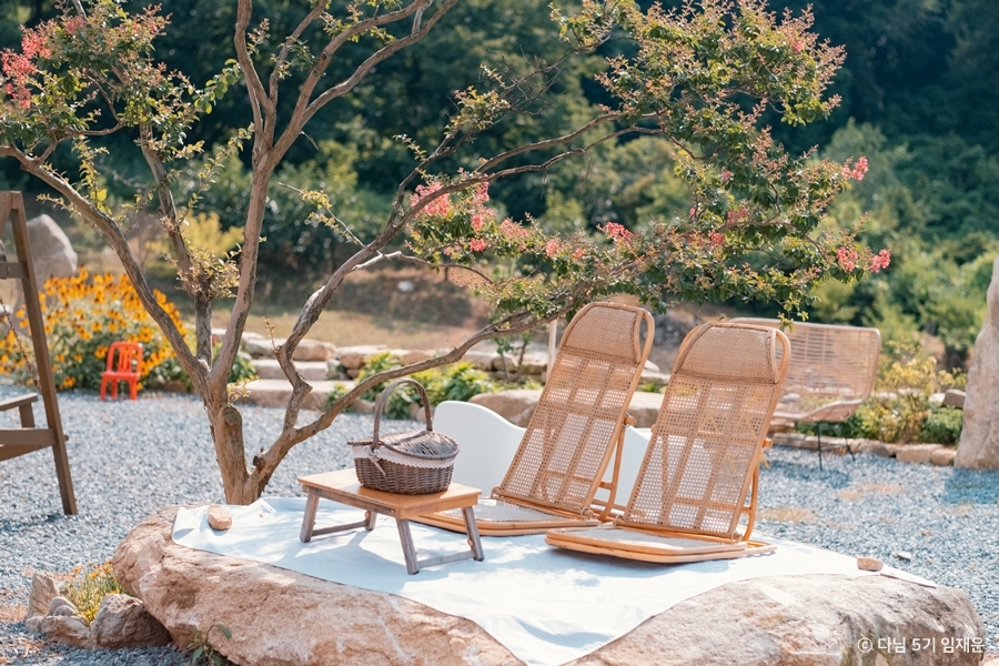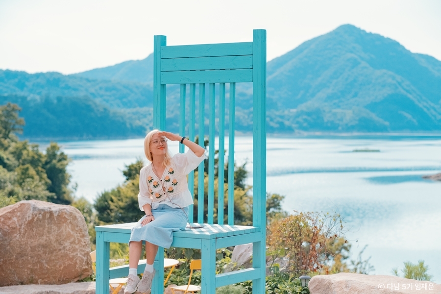 청풍호를 배경으로 멋진 인생 사진을 남기고 싶다면 카페 글루글루를 추천한다. 아담한 규모지만 테이블에 앉아 있으면 통유리 너머 푸른 청풍호가 한눈에 들어온다. 그러나 글루글루의 진짜 매력은 길 건너에 마련된 글루랜드다. 안내 지도를 따라 좁은 오솔길을 3분여쯤 걸어가면 드넓은 청풍호를 끼고 야외에 테이블과 의자가 마련돼 있다. 성인 키를 훌쩍 넘는 크기의 대형 의자부터 추억의 초등학교 나무의자까지 다양한 포토존이 마련돼 있다. 한쪽에는 한 폭의 그림처럼 아름다운 청풍호를 배경으로 바위에 앉아 사진을 찍을 수 있는 포인트도 자리해 SNS에서 큰 인기를 누리고 있다.