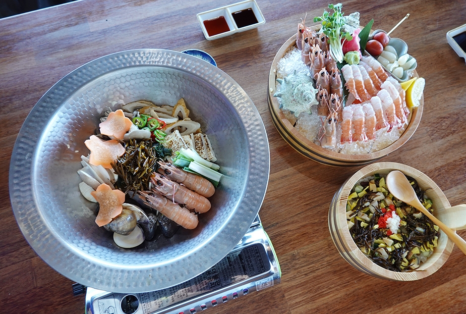 바타타식탁은 제주도 표선해수욕장 앞에 위치한 해산물 요리 전문 음식점으로, 제주산 해산물을 활용한 다양한 메뉴가 있다. 오랜 경력을 지닌 셰프가 직접 운영하며, 제주산 자연산 딱새우를 주재료로 한 다양한 요리를 선보인다. 대표 메뉴인 ‘바타타 회 세트’는 제주 자연산 딱새우회를 기본으로, 딱새우 회 초밥 또는 순살 제주 은갈치, 순살 딱새우조림과 머리라면 중에서 선택할 수 있는 구성으로 되어 있어 취향에 따라 다양한 조합이 가능하다. 이 외에도 매콤한 맛이 특징인 마라 딱새우, 제주 자연산 딱새우 찜 등 딱새우를 활용한 다채로운 요리가 준비되어 있다. 소규모 모임이나 단체 예약도 가능하고 간단한 식사를 하기에도 좋다.