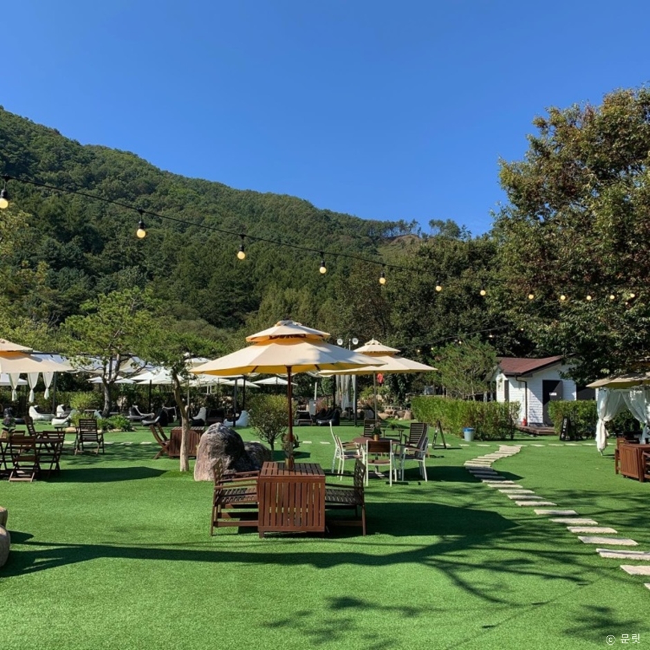 양평 문릿은 강원도와 서울을 오가는 길목에 있는 카페다. 넓은 야외 정원과 계곡 뷰, 그리고 이국적인 분위기를 느낄 수 있는 감성 공간으로 낮에는 넓은 정원을 저녁에는 멋진 야경을 즐길 수 있다. 마당이 있는 정원은 하늘을 가려주는 천막이 있고, 천막 사이로 보이는 하늘이 잘 어울리는 감성 공간이다. 정원은 반려견 동반이 가능하고 마당 한쪽으로는 반려견이 뛰어놀 수 있는 공간이 별도로 마련되어 있다. 계곡 쪽에는 온실&계곡 자리가 있다. 이곳은 어린이와 반려견을 동반할 수 없다. 2인 전용 공간으로 조용하고 편안하게 계곡 뷰를 즐기며 휴식할 수 있다.