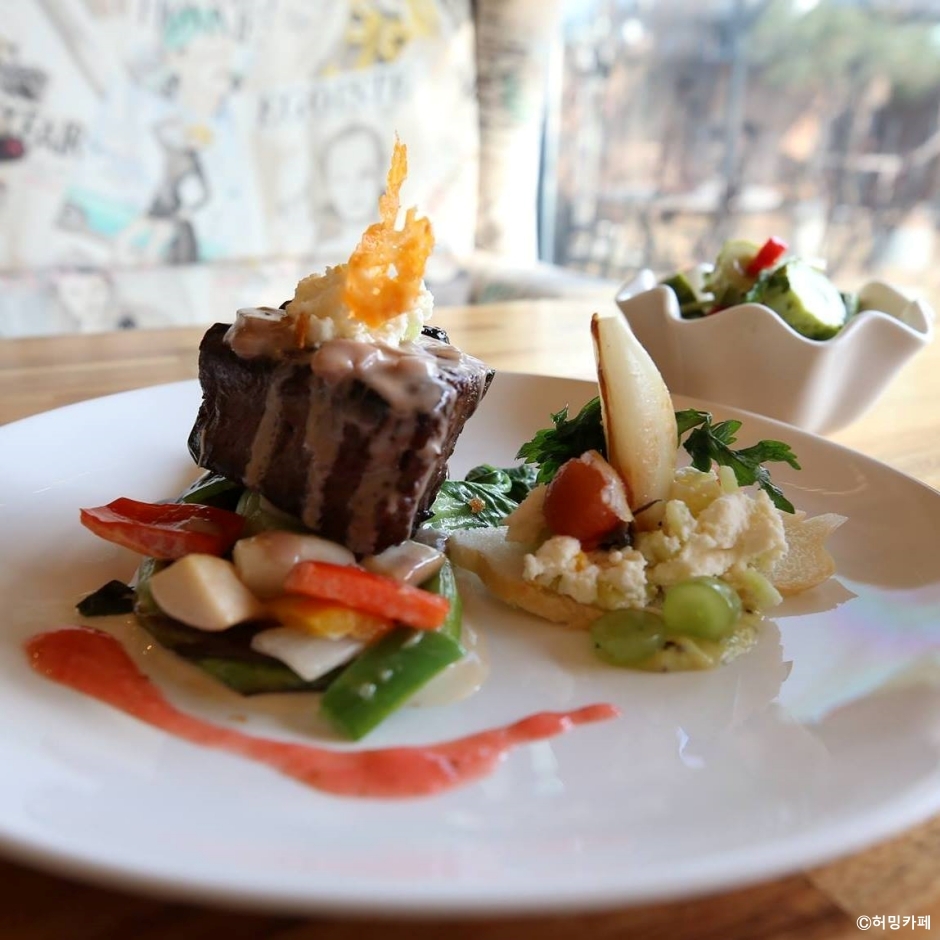 허밍카페는 화성시 정남면 보통저수지를 끼고 있는 레스토랑 카페이다. 점심에는 돈가스나 파스타 종류와 음료를 주로 판매하고 저녁에는 주류와 안주, 식사 메뉴를 판매하는 곳이다. 메뉴가 책처럼 보일 정도로 취급하는 메뉴가 많다. 저수지 주변이라 보통저수지를 한 바퀴 돌고 식사나 차를 마실 수 있다. 1층에는 단체석과 주문하는 곳이 있고, 2층은 저수지를 조망할 수 있는 좌석들이 있다. 인테리어가 전체적으로 고풍스러운 편이다. 정원이 잘 관리되어 있고 마당에 앉아 시원한 분수와 저수지를 바라보며 음식을 즐길 수도 있다. 전용 주차장이 넓어 이용이 편리하다.