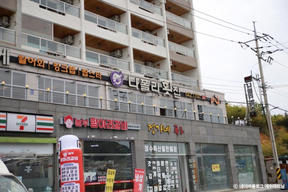 나폴리 횟집은 내부에서 여수항 전경이 한눈에 보여 시원한 오션뷰와 함께 음식을 즐길 수 있는 횟집이다. 메인 메뉴를 주문하면 노릇노릇하게 양념 발라 구워 달짝지근하면서도 탱글탱글한 낙지다리가 씹히는 낙지 호롱이와 도톰한 두께의 촉촉한 하모 등 푸짐한 밑반찬이 나온다. 살짝 데친 하모를 특제 청양 간장 소스에 찍어 먹으면 비린내 없이 고소한 장어의 풍미를 생생하게 느낄 수 있다. 메인 메뉴인 샤브샤브는 국물용 조개와 전복이 생물로 나와 개운한 바다 내음을 느낄 수 있다.
