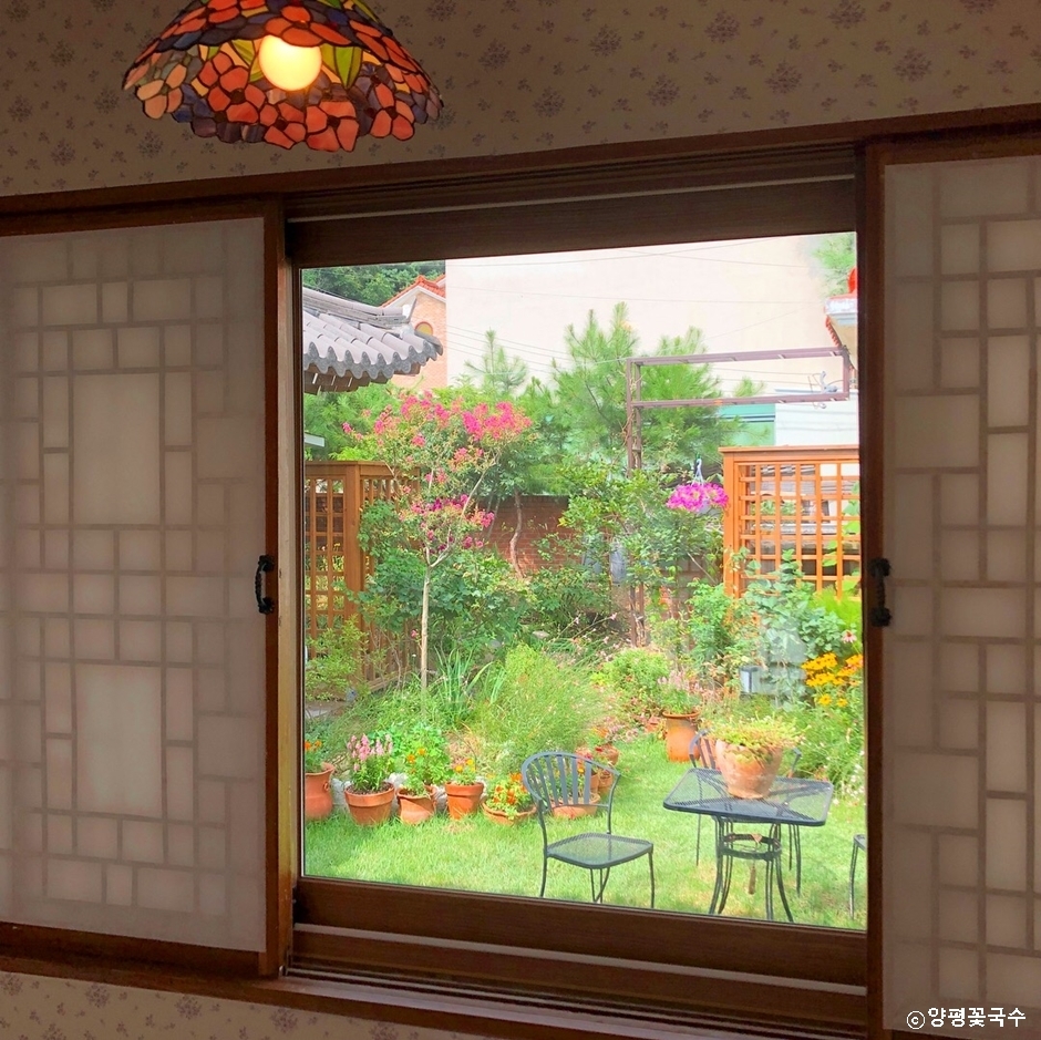 양평꽃국수는 양평군 옥천면 신복리에 있는 국수 전문점이다. 한옥을 개조하여 형형색색 화려한 꽃과 나무들이 배치되어 맛은 기본이고 눈에 들어오는 풍경에 눈길을 빼앗기는 곳이다. 대표 음식인 송이갈비국수에 들어가는 사골 육수는 야채가 듬뿍 들어가 진하면서 시원한 맛이 일품이다. 모두 국수 위에 음식 맛만큼 예쁜 꽃이 올라가 눈이 더욱 즐거운 음식을 제공한다.
