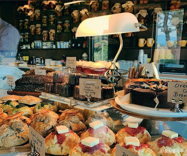 모노클제주는 제주특별자치도 서귀포시 남원읍 위미리에 있는 베이커리 카페다. 넓은 잔디 정원에 파라솔이 있는 테이블을 설치해 어린이들이 뛰어놀기 좋고 반려견 입장도 가능하다. 카페 건물은 빨간 벽돌을 올려 빈티지한 창고형 스타일이지만 내부는 현대식 인테리어로 개성 있는 좌석을 배치했다. 포토존이 곳곳에 숨어 있어 사진찍기에도 좋다. 단호박 치즈케이크, 말차로쉐파운드, 클래식 스콘 등 다양한 디저트 메뉴들을 판매하고 있으며 홀케이크나 홀파운드도 예약 주문이 가능하다. 커피나 음료와 즐길 수 있는 곳으로 주변에 함께 둘러보기 좋은 여행지로 큰엉해안경승지가 있으며 주변 도로는 겨울철에 동백, 봄에는 벚꽃이 유명하다.