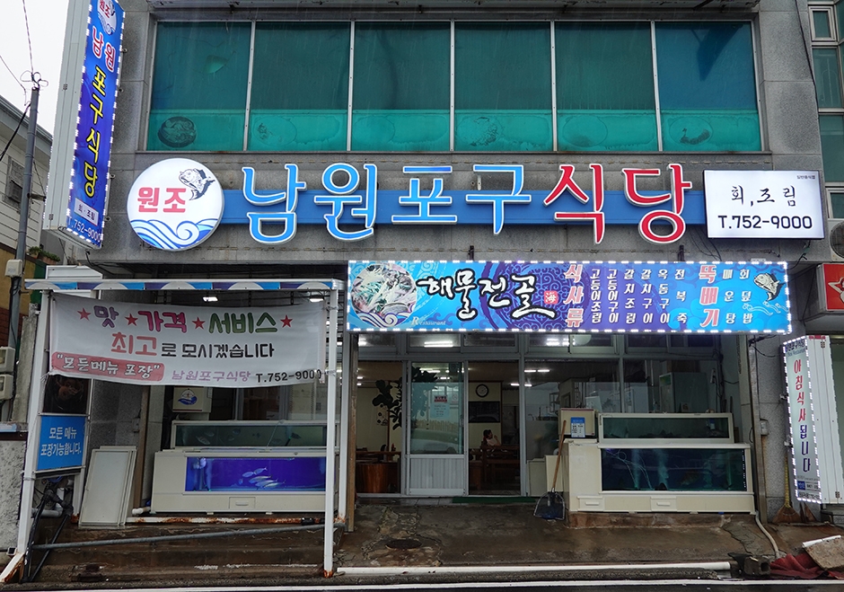 원조남원포구식당은 제주도 서귀포시 남원읍에 위치한 남원포구 인근의 한식 전문 식당으로, 바다 내음 가득한 신선한 해산물 요리를 맛볼 수 있는 곳이다. 이 식당은 아침에 열기 때문에 든든한 아침식사를 원하는 사람들도 만족할 수 있다. 대표 메뉴로는 전복뚝배기, 성게보말미역국, 갈치조림, 고등어조림이 있으며, 하나같이 신선한 재료를 사용해 제주 바다의 맛을 담아내고 있다. 전체적으로 국물 음식이 지나치게 진하거나 자극적이지 않아 신선한 해물의 담백한 맛을 즐기기에 좋다. 이 식당은 깔끔한 내부와 정갈한 상차림으로 제주 한 끼를 제대로 경험하고 싶은 사람들에게 제격이다.